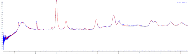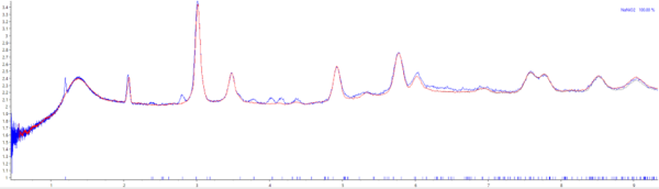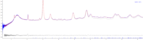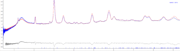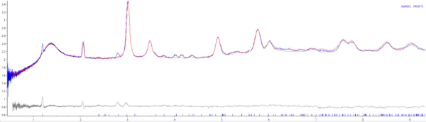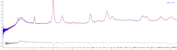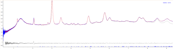 I originally had no min/max limits on the background scalar, I’m not sure what the defaults are but it can definitely scale to >1. This is how a pawley looks with no extra background polynomial, and a defined min 0 max 10 (refined to 1.256). Note the number of frames/counts is not equal between the background scan and the sample scan. For this work we took x times 2 min long scans on Polaris, summing approx. 1.5h worth of scans in Mantid. The number of scans for the background was clearly not as many as for the sample here, hence the >1 value:
