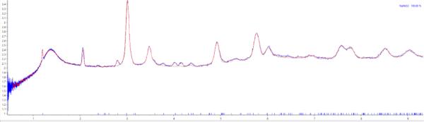 I then fix the background polynomial and scalar to their current values, and attempt the Riet (iters no longer at 0), the phase does not manifest at low Q, but does fit everything beyond 3.71 angstroms well (phase scale refined to 0.24481358`_0.006299):